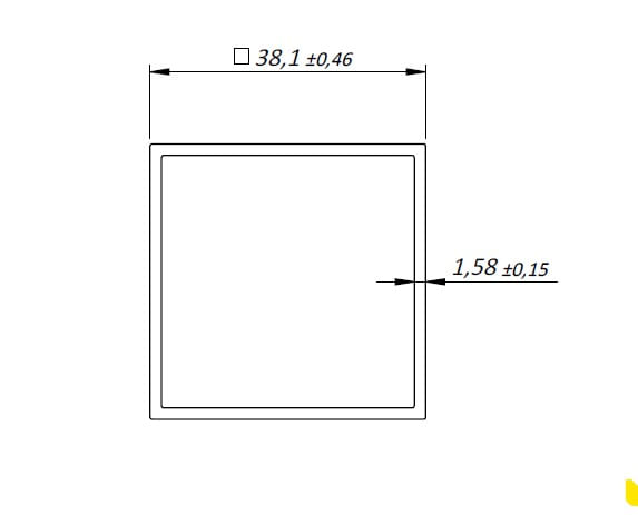 Tubo quadrado de alumínio 1.1/2" (38.10mm) X 1/16" (1.58mm) | Natural